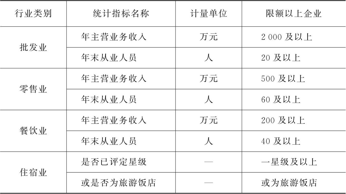 表4-1 限额以上批发、零售业、住宿和餐饮业的划分标准
