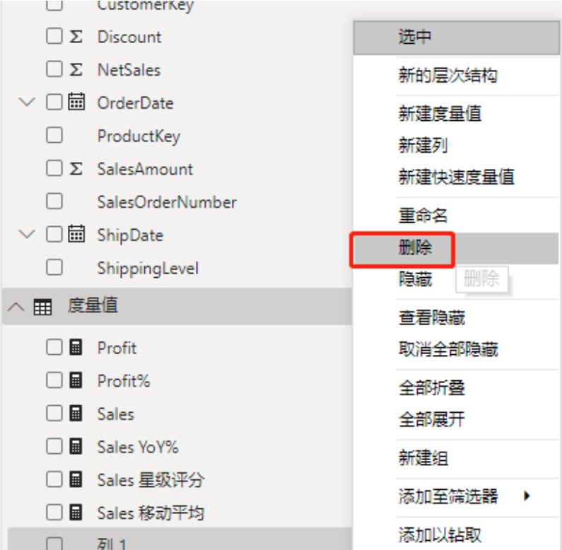 重复以上操作,直至所有的度量被统一放置在同一个文件夹下。再将“列1”列删除,如图2.4.29所示。