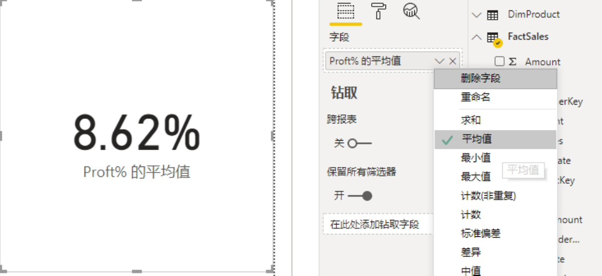 根据前文已知,这个问题是由于默认的聚合导致的,将其聚合方式改为“平均值”,利润率即变为8.62%,如图2.4.13所示。