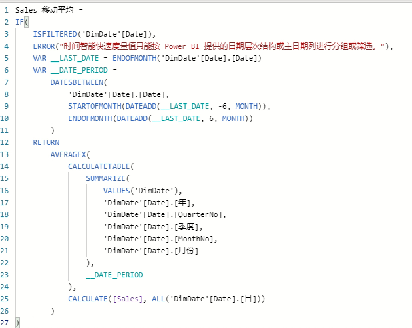 AVERAGEX(CALCULATETABLE(SUMMARIZE(VALUES())),CALCULATE()):这部分稍微复杂,使用了多重嵌套函数。因为DAX的计算方向是从内向外的,因此这里也依据该顺序介绍DAX函数。