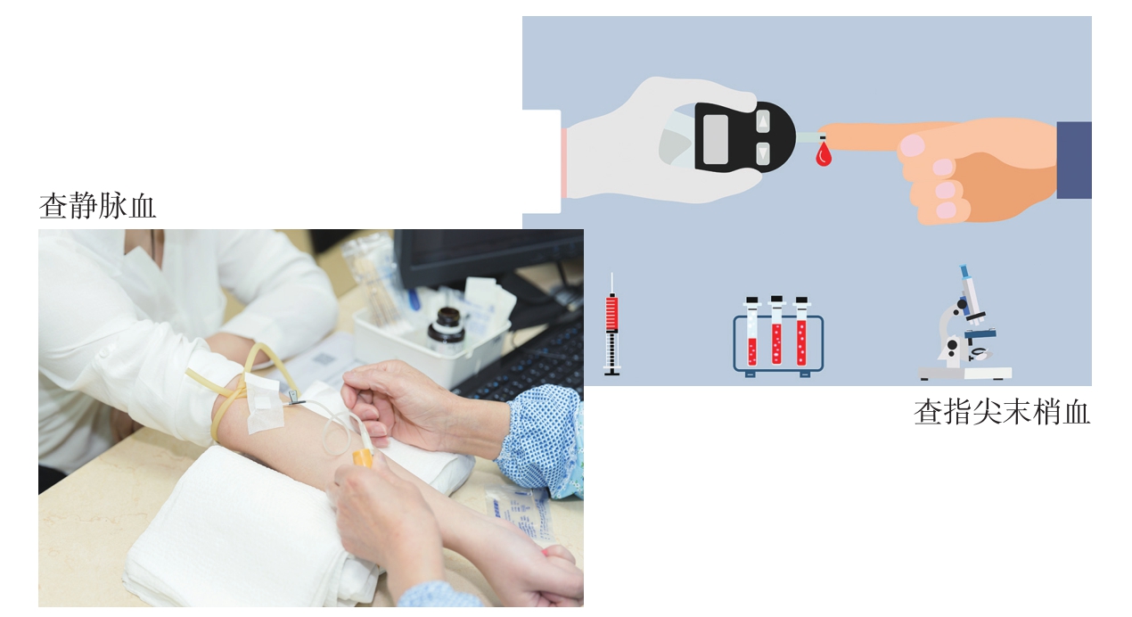 图1-8 可以抽取静脉血或从指端末梢取血进行血尿酸检测