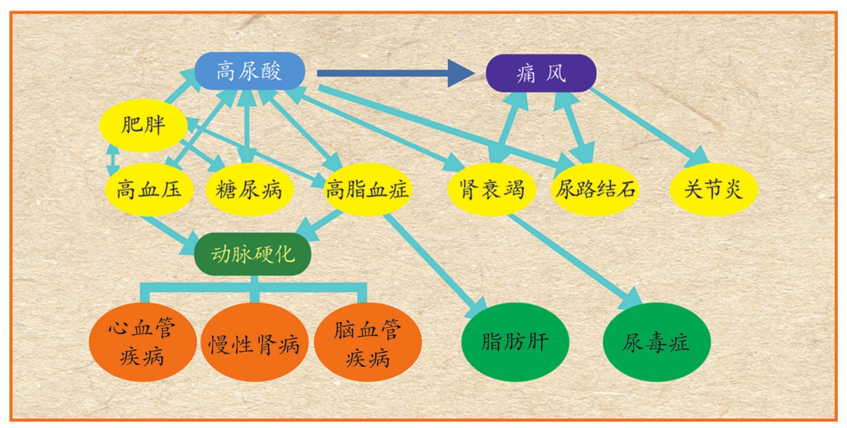 图1-11 高尿酸血症对人体的多种危害,痛风只是其中的一种