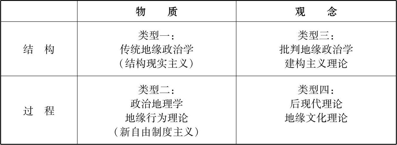 值得一提的是,这两组二分法涉及国际关系的范式之争。如果将主流的国际关系理论放入表 1,类型一、类型二和类型三分别对应国际关系理论中的结构现实主义、制度自由主义以及结构建构主义。这也说明了地缘政治学和主流的国际关系理论之间存在一定的通约性,有助于加深对地缘政治学的理解,但这并不是本文讨论的重点,在此不加赘述。