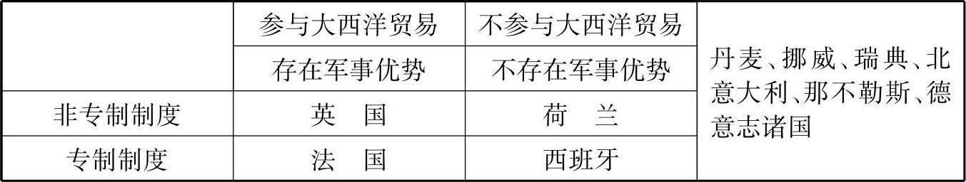 借助于图 3 中的机制性讨论,大致上展示了西方世界兴起的结构和过程的机制之后,以下将英国作为一个正面案例,而法国和荷兰作为负面案例来进行比较分析,从结构和过程两个方面分别阐述强权和制度这两个因素在地缘政治中的作用。