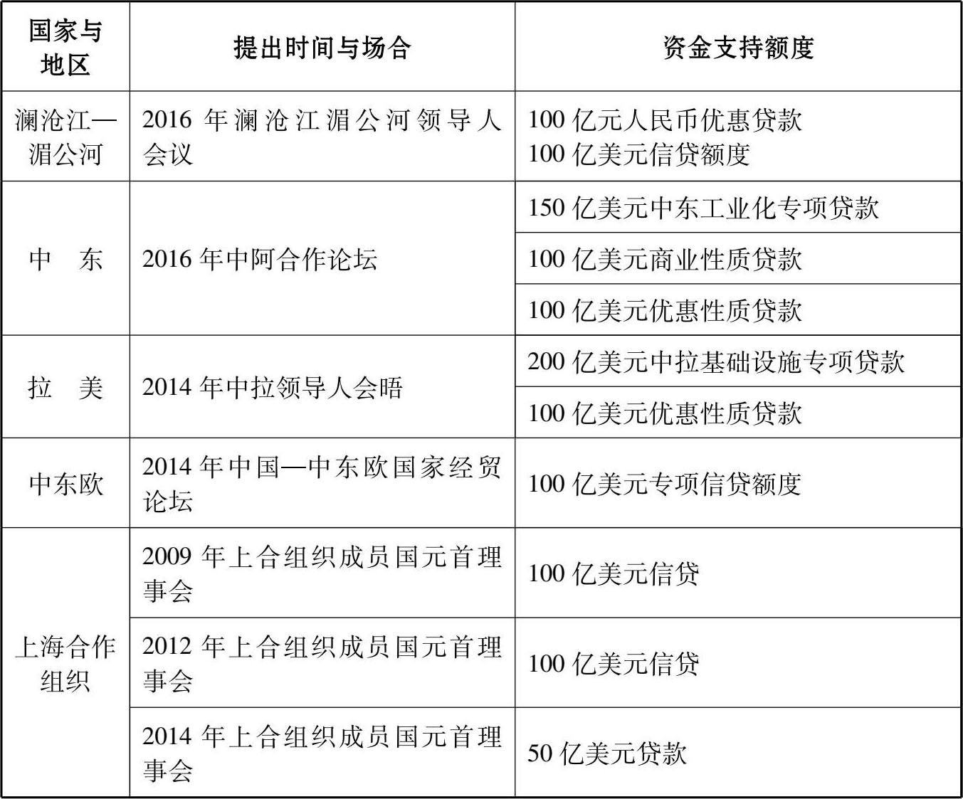 表 4 中国近年来提出的与基础设施有关的资金支持额度