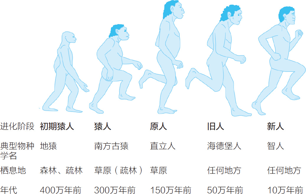 ◆五个阶段的人类祖先(从初期猿人到新人)