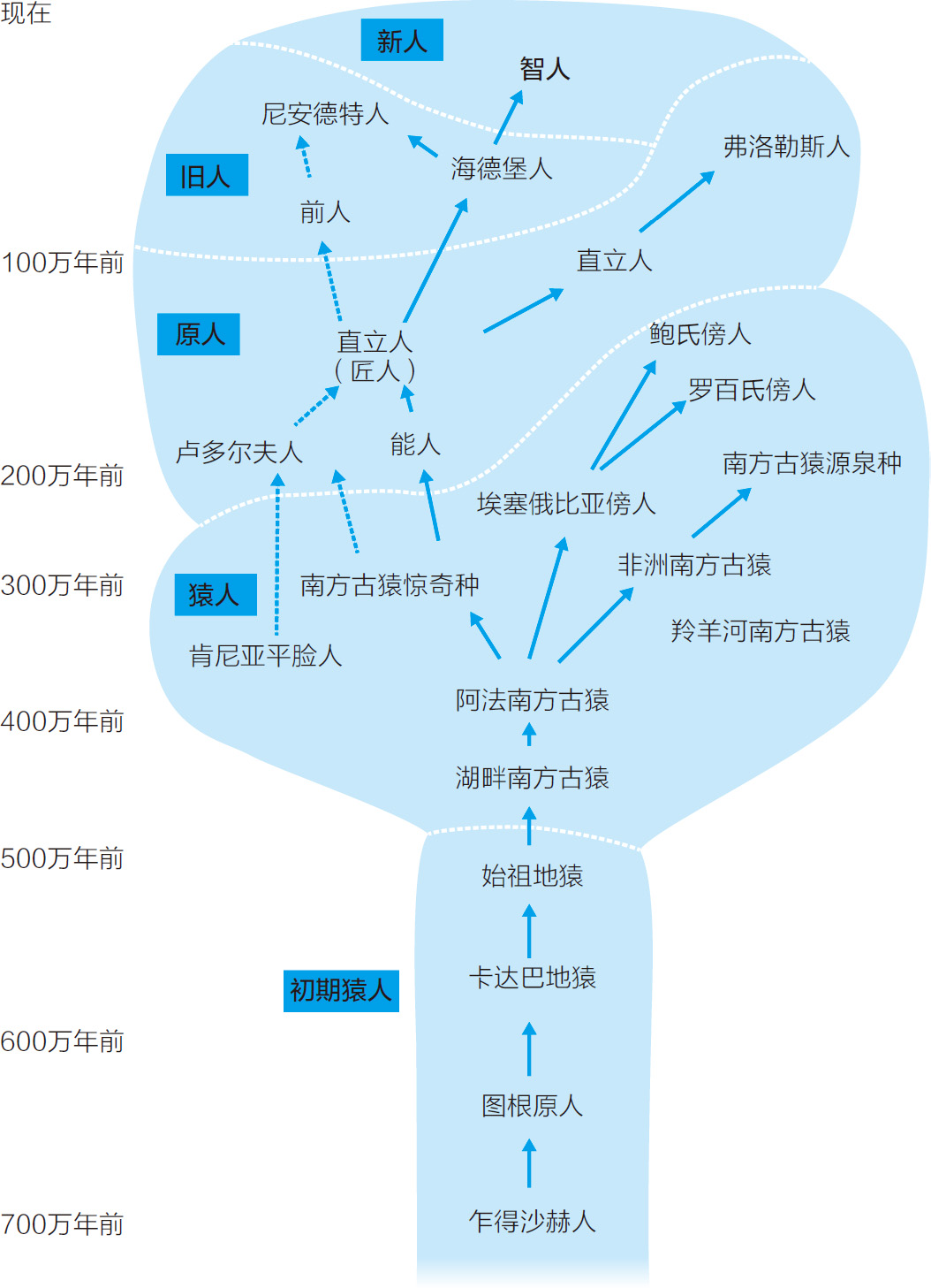 不仅如此,随着近年来科学家对初期猿人研究的不断推进,现在我们已经将猿人细分为初期猿人和猿人两类。也就是说,人们认为人类是经过初期猿人、猿人、原人、旧人、新人