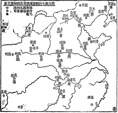 分封诸王的制度,决定于洪武二年(公元一三六九年)四月初编《皇明祖训》的时候。三年四月封皇第二子到第十子为亲王。可是诸王的就藩,却在洪武十一年定鼎京师之后。
