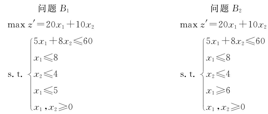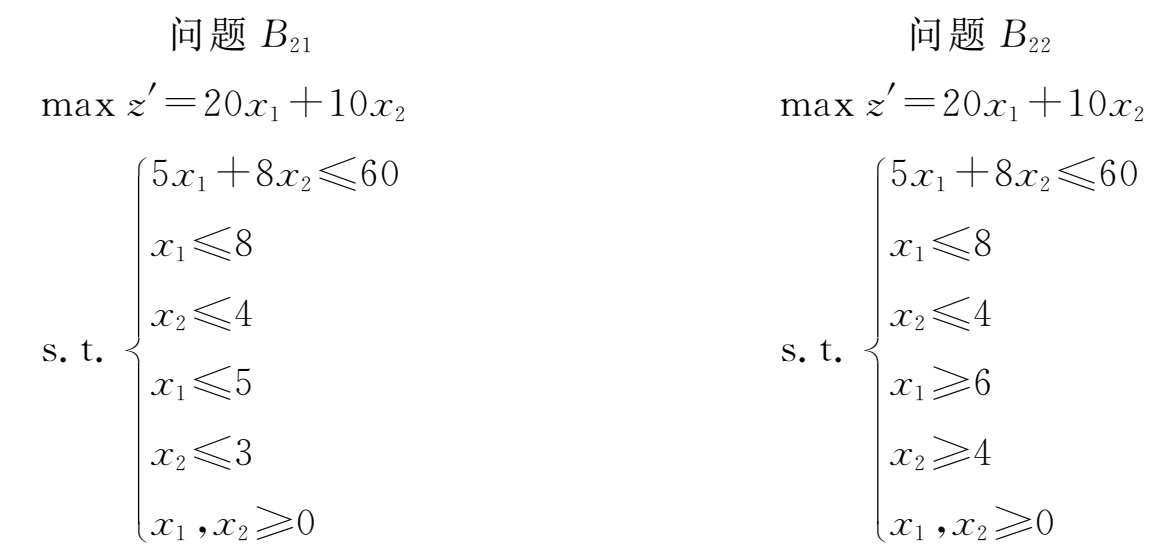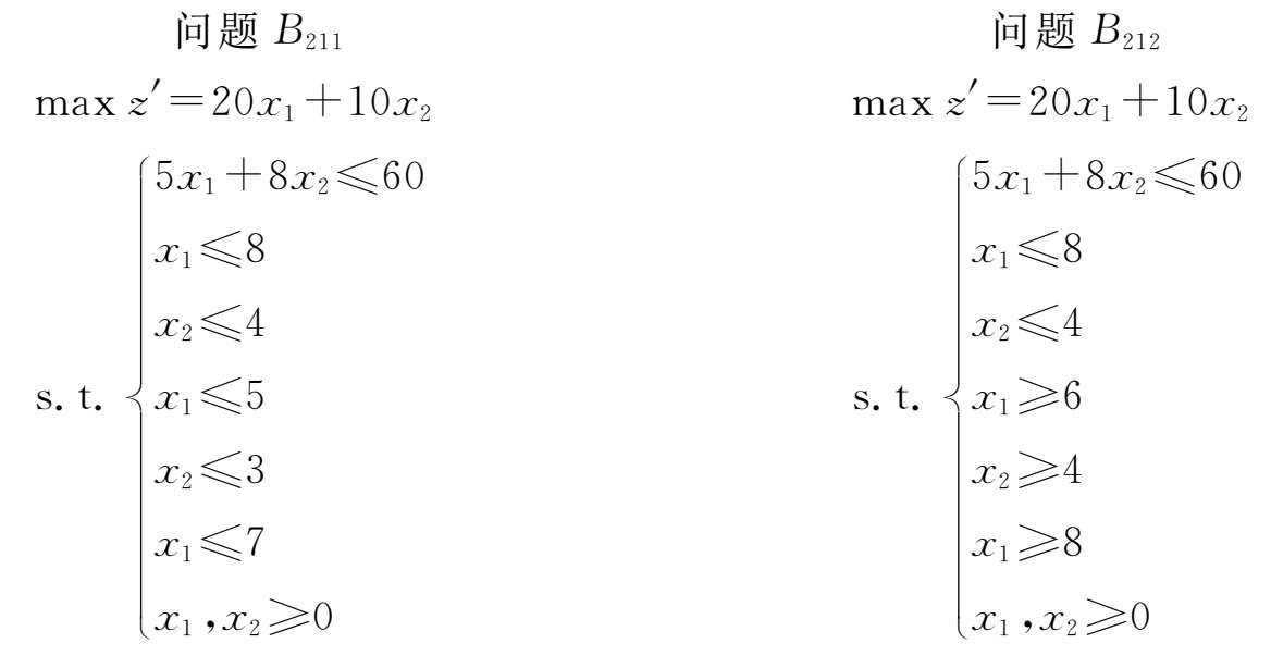 本例中问题 B 1 及问题 B 2 的模型及求解结果如下: