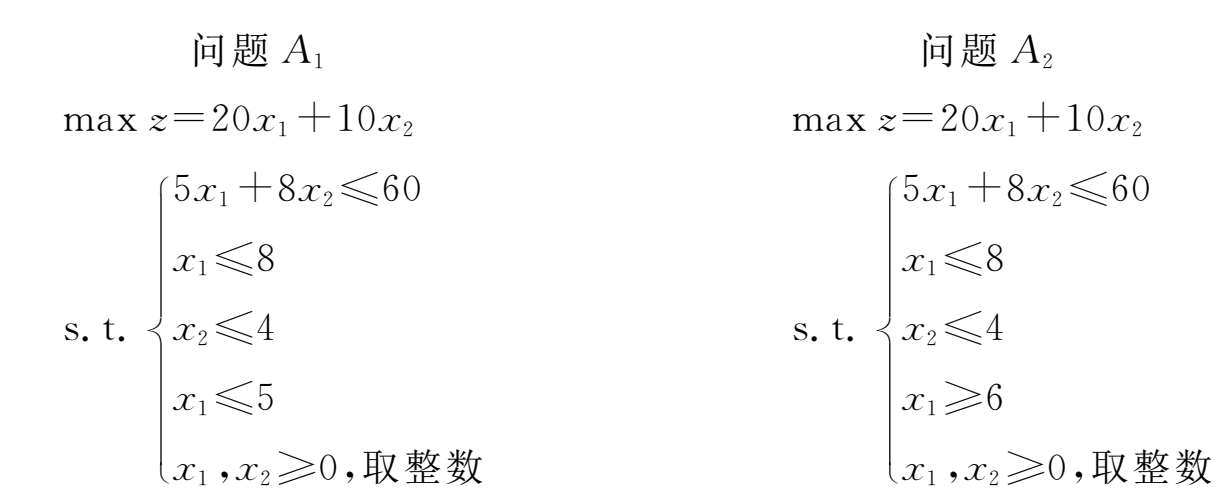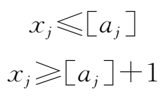 在 B 0 的最优解 X 0 中,任选一个不符合整数条件的变量 x j ,其值为 a j ,以[ a j ]表示小于 a j 的最大整数。构造两个约束条件: