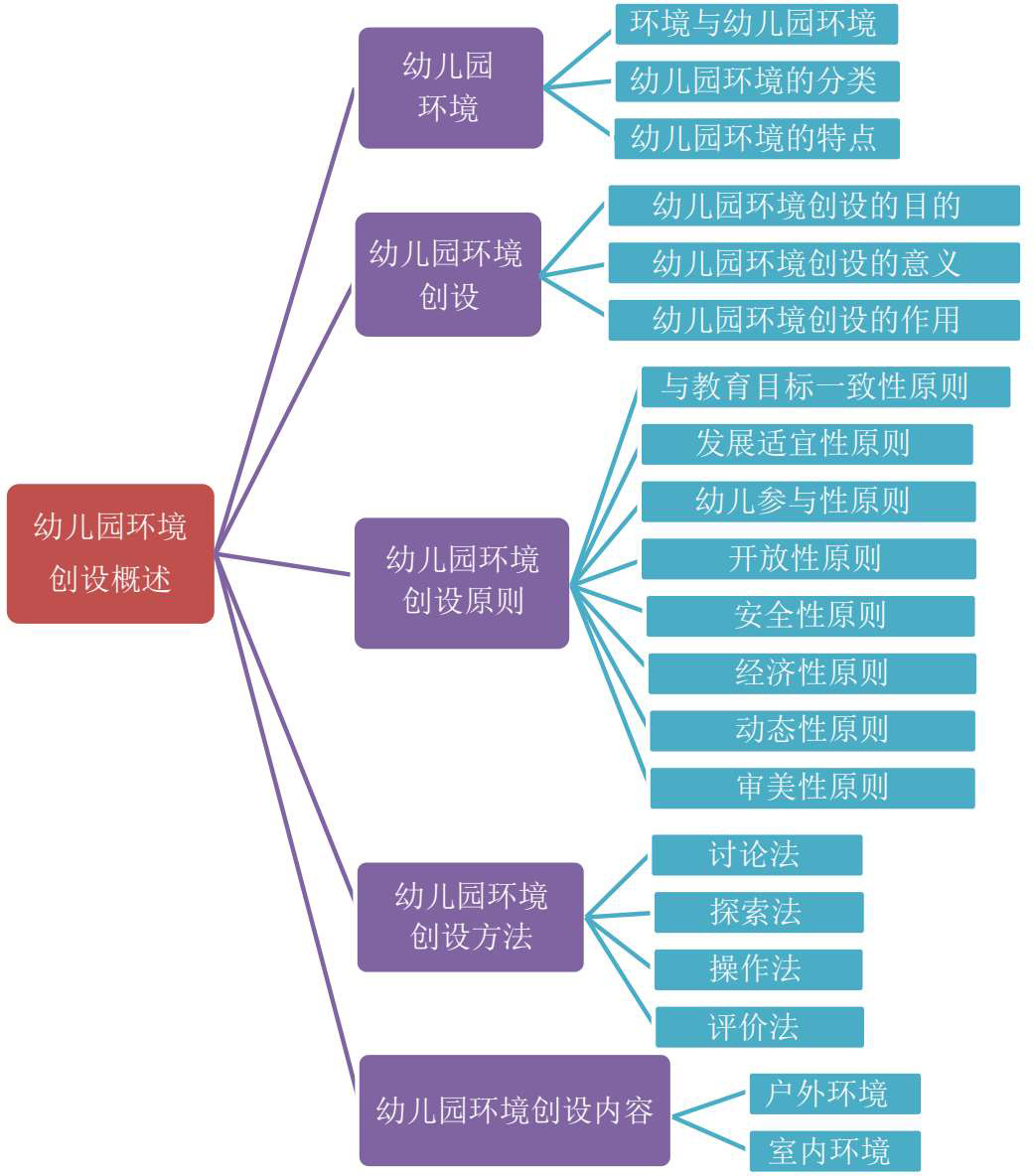 2.明确幼儿园环境创设的概念,理解其意义和作用,掌握幼儿园环境创设的原则和方法。