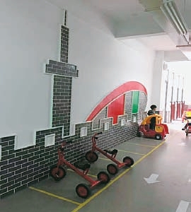 《指南》中社会领域目标之一为:幼儿应遵守基本的行为规范。3-4岁幼儿“在提醒下能遵守游戏和公共场所的规则”,4-5岁幼儿“感受规则的意义,并能基本遵守规则”,5-6岁幼儿“理解规则的意义,能与同伴协商制定游戏和活动规则”。围绕这些教育目标,幼儿园设计了与教育目标相一致的游戏环境(图 1-5、图 1-6),帮助幼儿在游戏情境中理解规则、遵守规则。