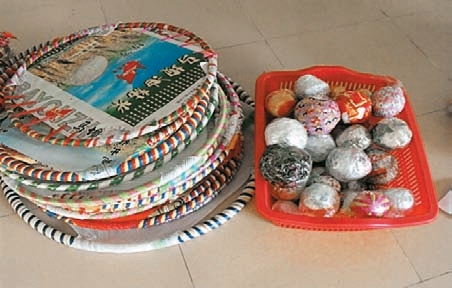 经济性原则是指创设幼儿园环境应考虑幼儿园自身经济条件,因地制宜办园。昂贵的幼儿园环境创设不一定有利于幼儿的全面发展,给幼儿提供物质条件时,教师应以物质条件对幼儿发展的作用大小和经济实用性为依据,既贴近幼儿生活,又有效激发幼儿的创造潜能。例如,幼儿园号召幼儿家庭收集废旧物品或本地的自然农作物及特色产品,加工成幼儿游戏玩具,丰富室内游戏环境,既贴近幼儿生活,又促进幼儿了解家乡风貌,还经济环保,可谓一举多得(图 1-12)。