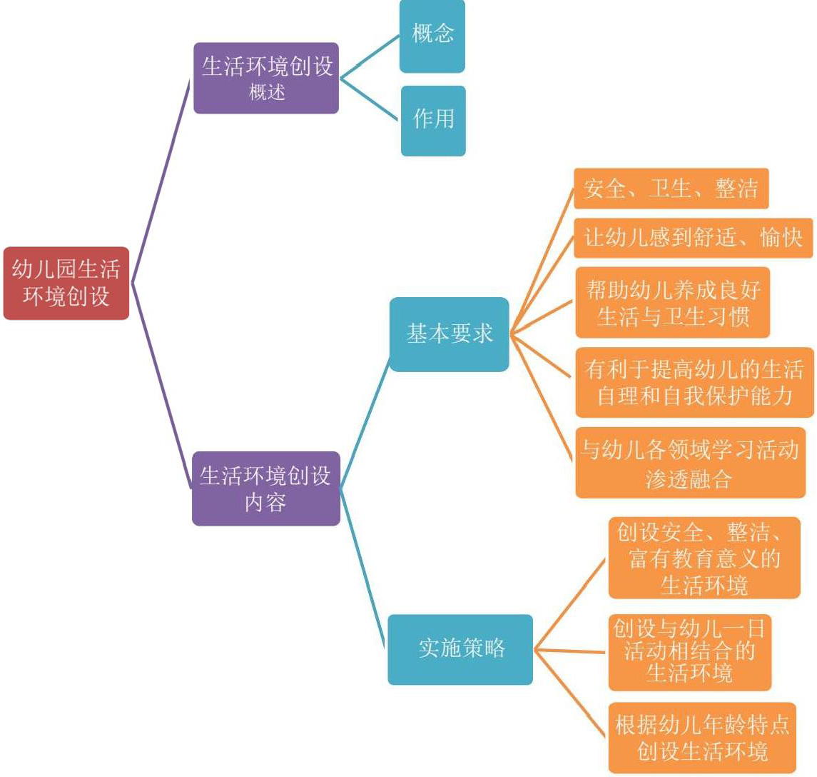 1.知道幼儿园生活环境创设的概念及作用,掌握幼儿园生活环境创设的要求。