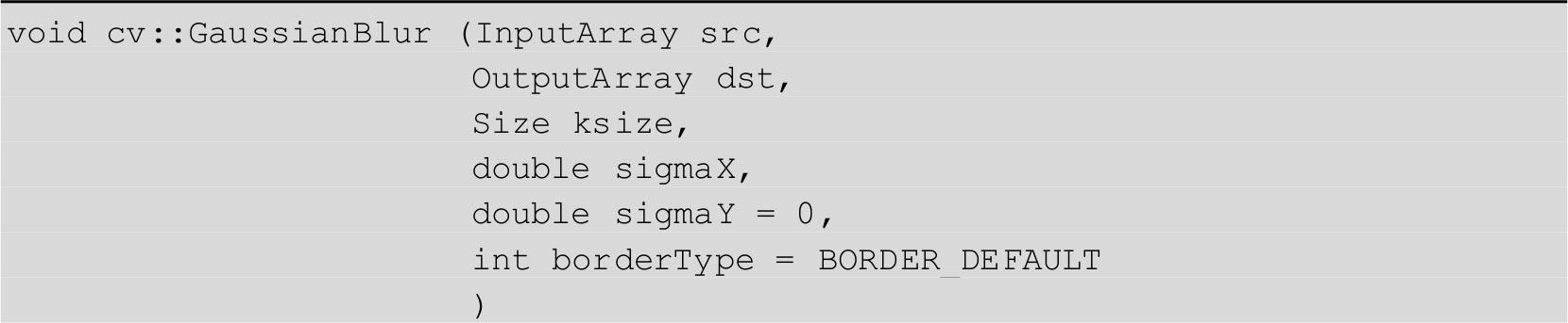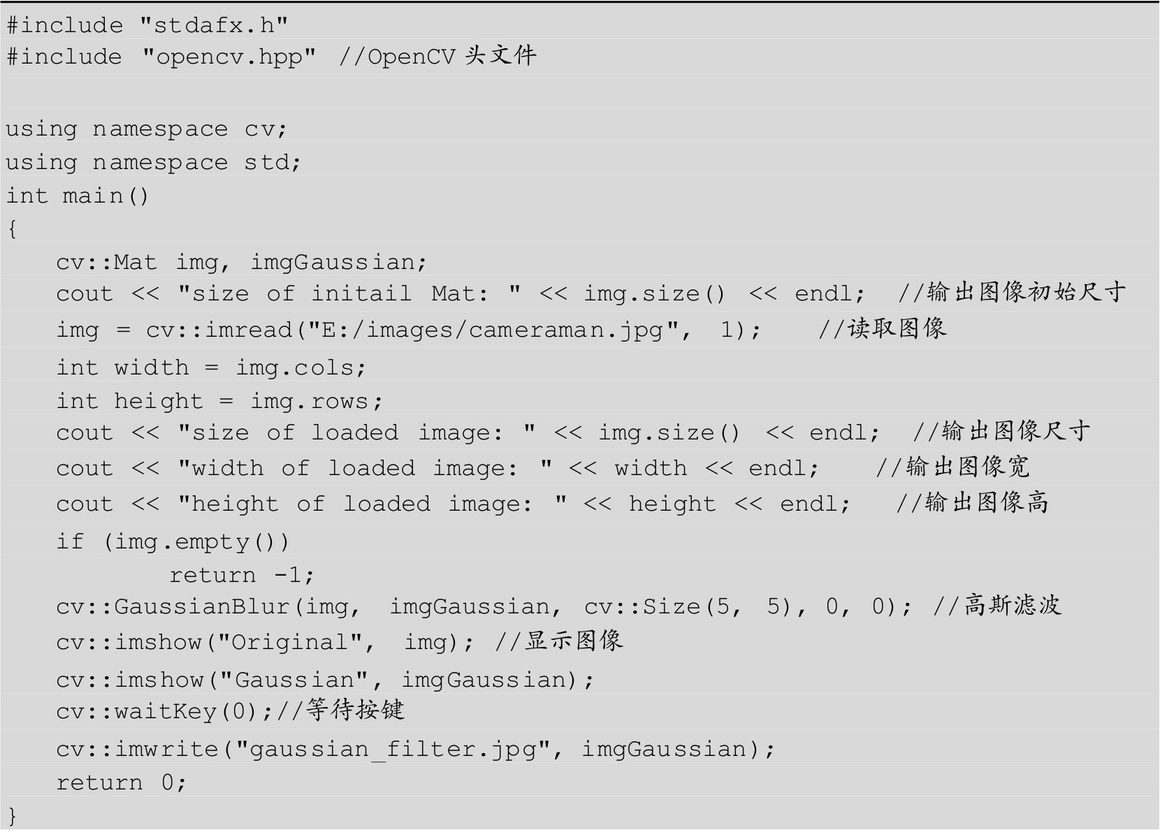 在示例代码2-1中,对图像进行了高斯滤波处理,用来显示并存储处理后的图像。