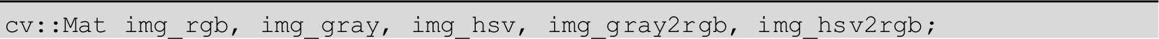在main函数中,定义一个图像变量。在OpenCV 4中,声明的是cv::Mat类型的变量img: