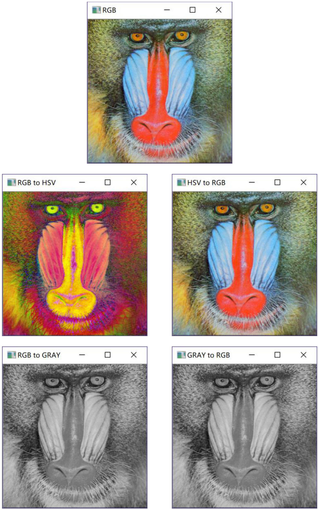 cv::cvtColor函数将输入的源图从某个颜色空间转换至另一个颜色空间。OpenCV的默认颜色空间为BGR(即RGB颜色空间中R与B分量交换位置),因此对于一个标准的24bit彩色图,第一字节为8bit蓝色分量,第二字节为8bit绿色分量,第三字节为8bit红色分量,第4、5、6字节表示下一个像素的蓝色、绿色和红色分量,依此类推。