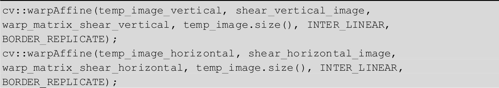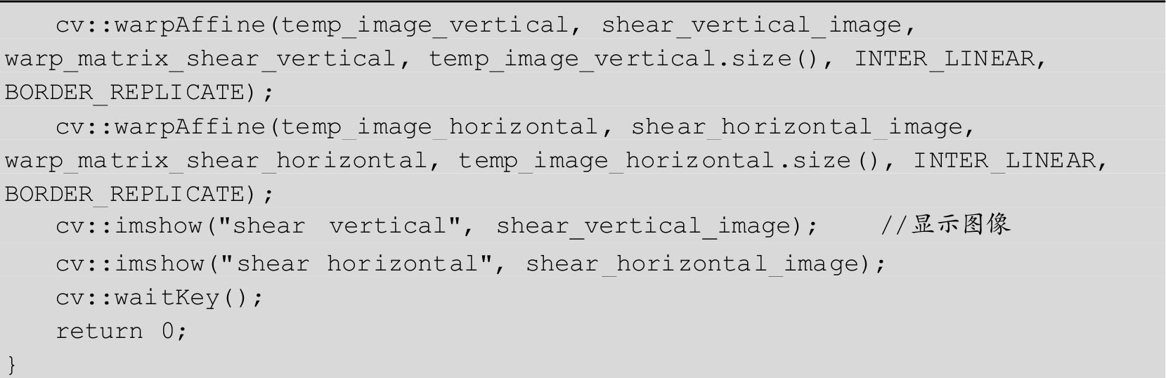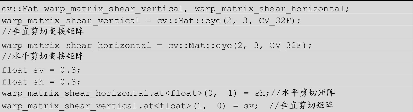 第2步,根据表2-3设置垂直剪切变换矩阵(warp_matrix_shear_vertical)和水平剪切变换矩阵(warp_matrix_shear_horizontal)。