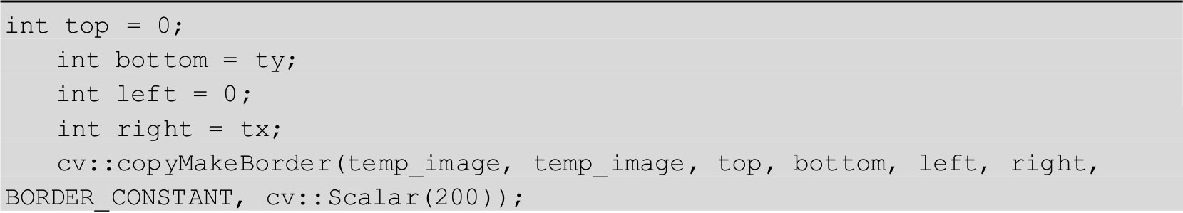 边界填充方式选择BORDER_REPLICATE,即复制图像边界的像素灰度填充旋转后产生的“空白”区域。