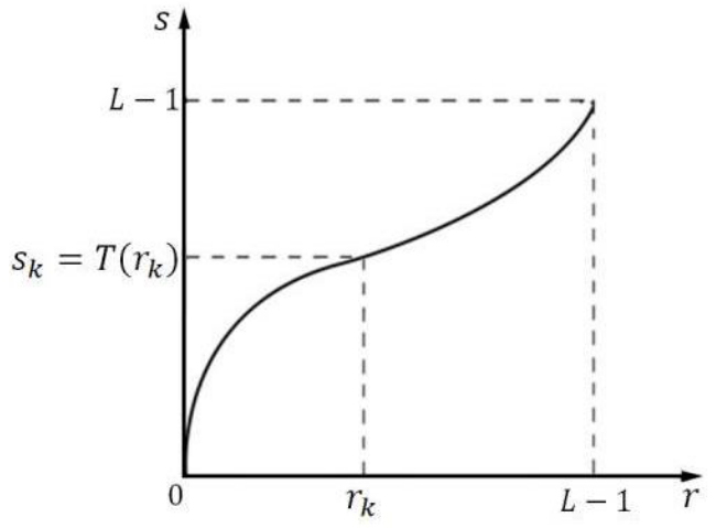 考虑连续函数并且让变量 r 代表待增强图像的灰度级。假设 r 被归一化到区间[0, 1],且 r =0表示黑色, r =1表示白色。考虑一个离散公式,并允许像素值在区间[0, L −1]内。对于任意一个满足上述条件的 r , 将注意力集中在变换形式上: