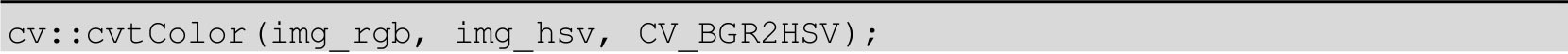 然后,使用cv::cvtColor函数对读取的源图img_rgb进行转换。例如,下面的代码可以将RGB图转换为HSV图: