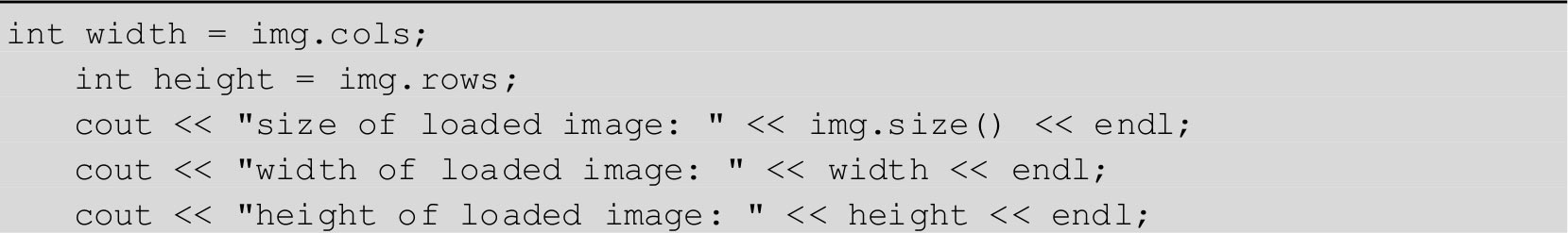 在处理图像时,经常需要获取图像的宽和高,OpenCV中的cv:Mat类的本质是矩阵,图像是二维矩阵,因而可以通过列数与行数,即cols和rows,读取二维矩阵的宽和高: