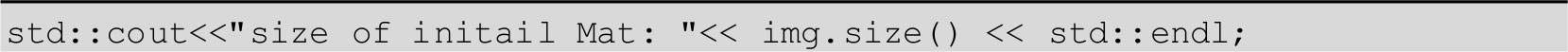 这个定义创建了一幅尺寸为0×0的图像。下面用cv:Mat类的size属性进行验证: