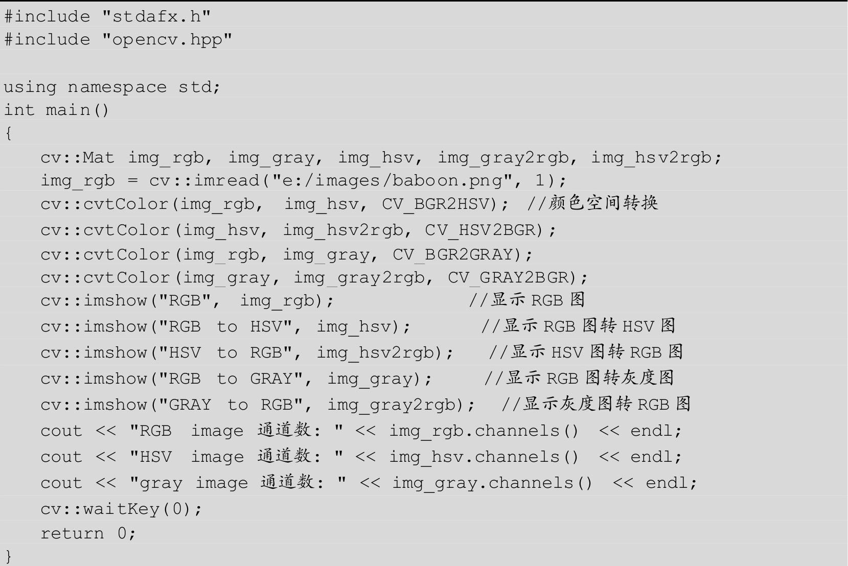 想要使用OpenCV的类与函数,首先要引用相关头文件,头文件定义了所需的类和函数。示例代码2-1中引入了: