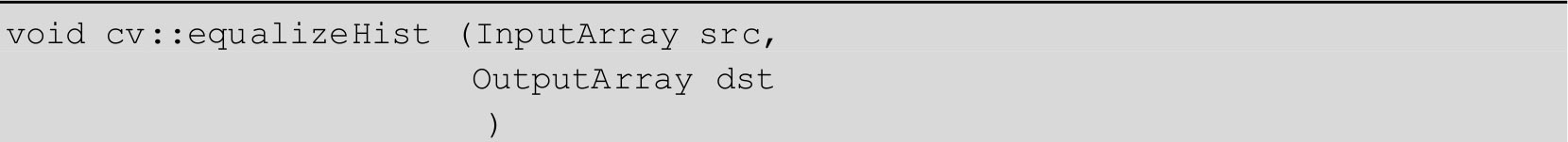 其中,cv::equalizeHist函数使用式(2-14)自动完成了直方图均衡化处理。