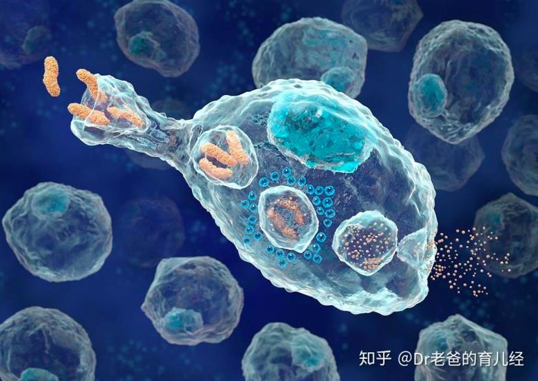 第二种人体免疫力叫做「固有免疫」,也就是通常所讲的,孩子的「抵抗力」。可以理解为人体内有一些「卫兵」,例如:巨噬细胞,NK 细胞等等。它们是「常规部队」,负责保护人体不受细菌病毒等敌人的侵犯;它们也是多面手,什么敌人都能应付。不过它们的弱点在于专业性不强,有时候会「打败仗」。