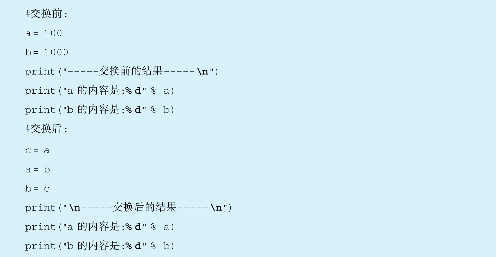 经过交换后,a等于1000,b等于100。