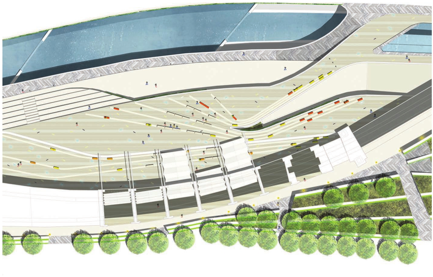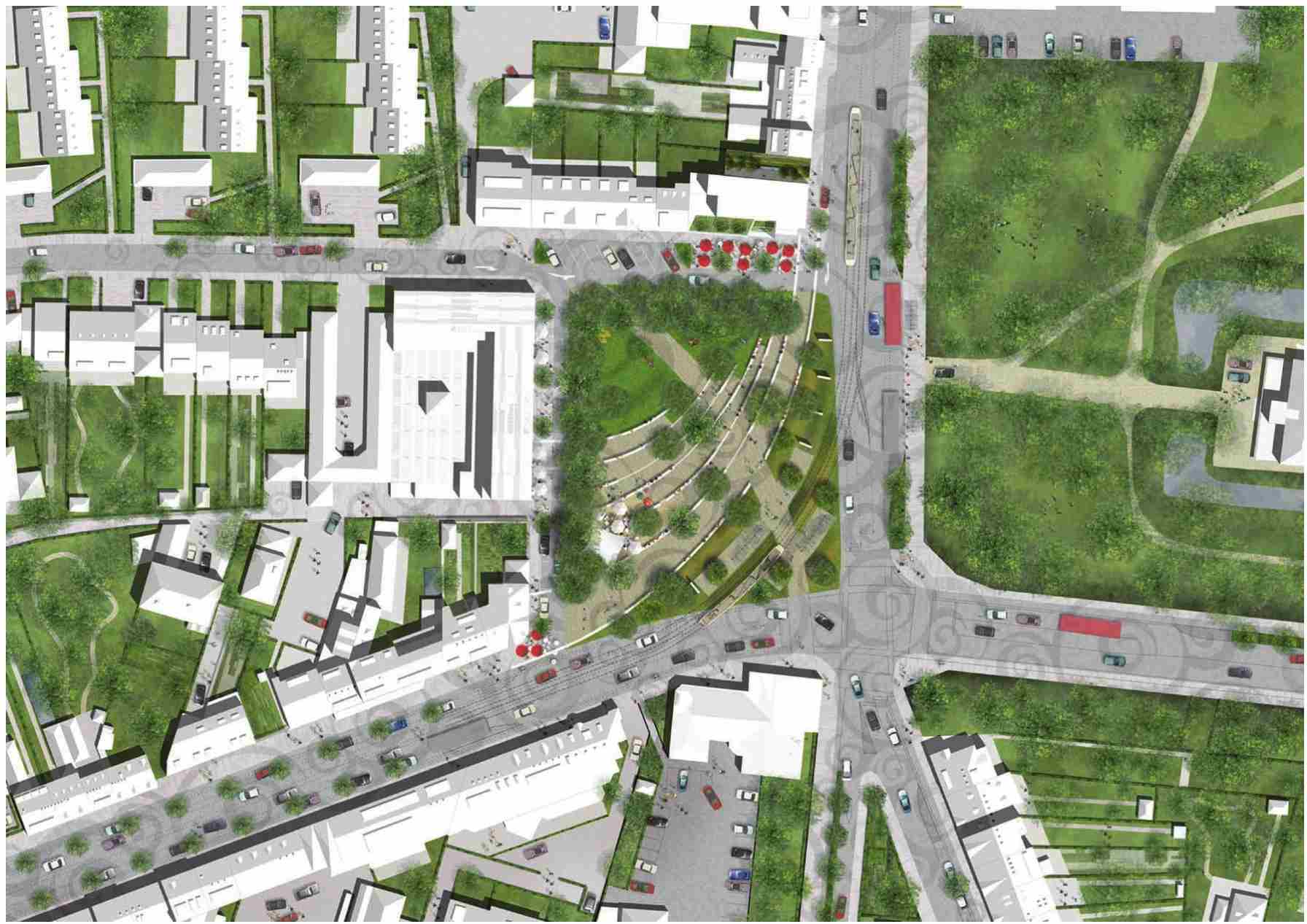 图2.3 德国博库梅尔(Bockumer)广场总规划图。Photoshop渲染之前采用CAD绘制。由雷内·兰斯(ReneRhiems)完成。