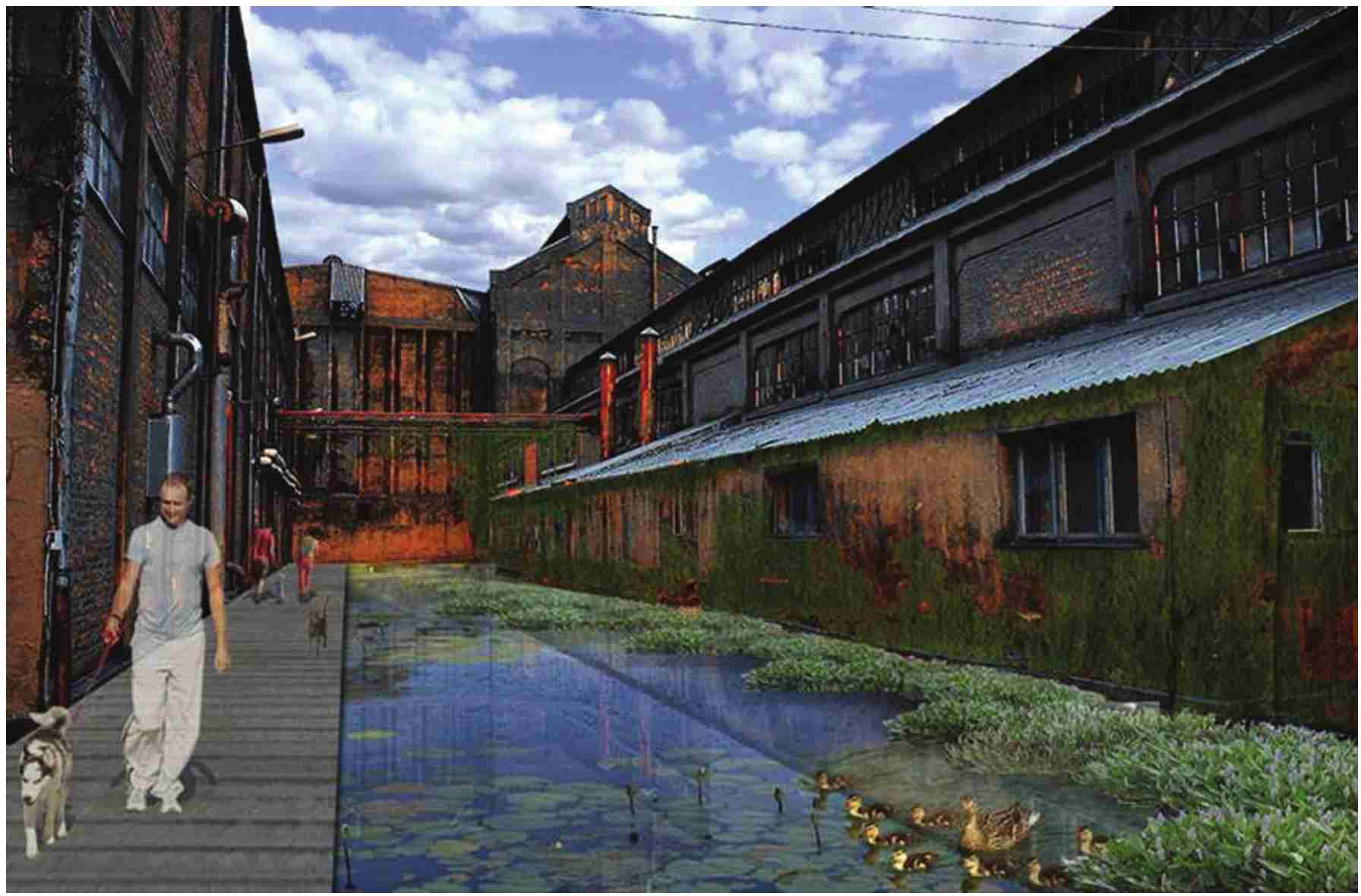 图2.5a 新运河透视、蒙太奇影像。采用Photoshop 制作。由托布约恩·本松特(TorbjornBengtsson)完成。
