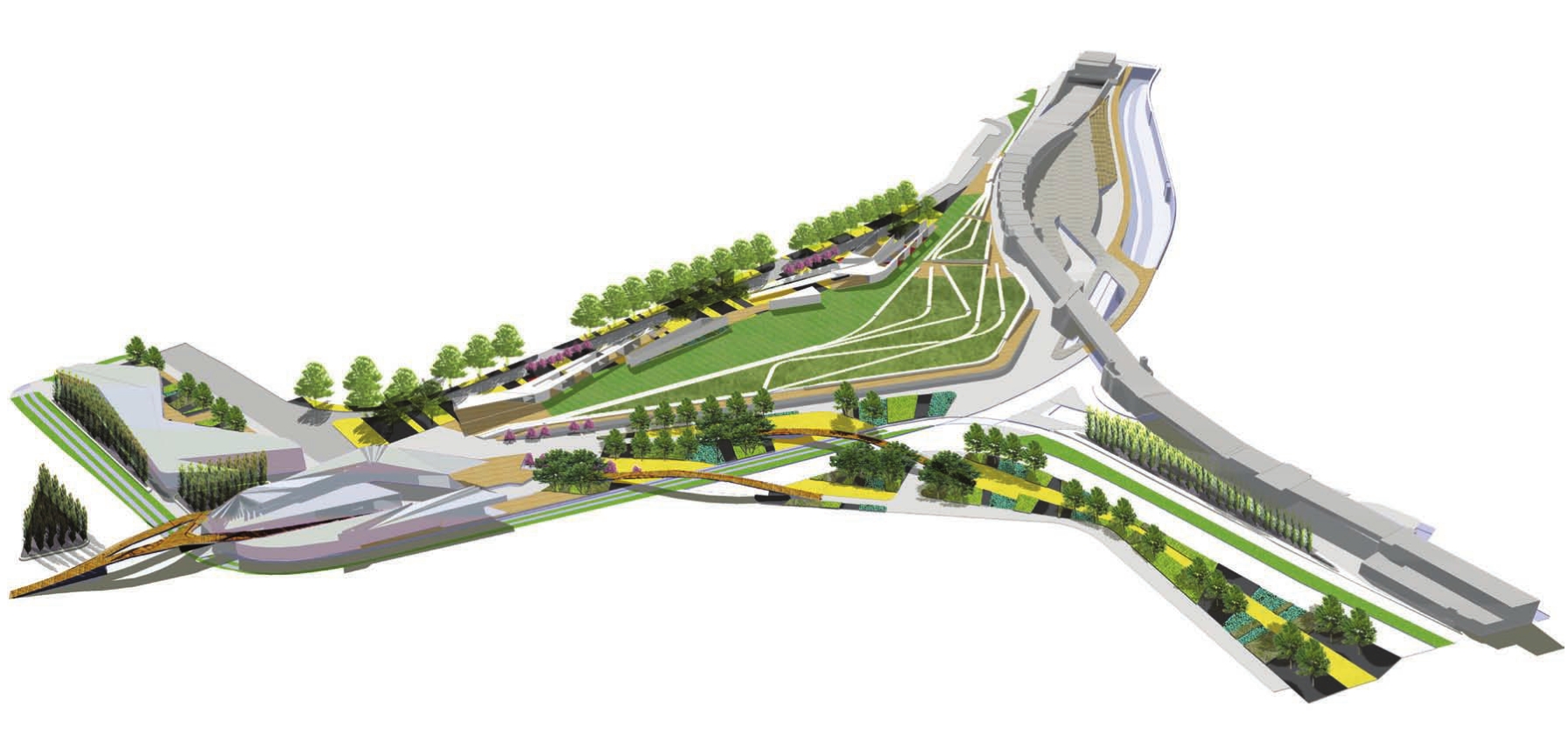 图2.2a 穆拉诺岛公园设计。采用了AutoCAD、Photoshop 和手绘进行渲染。由休·巴恩(HughBarne)制作。