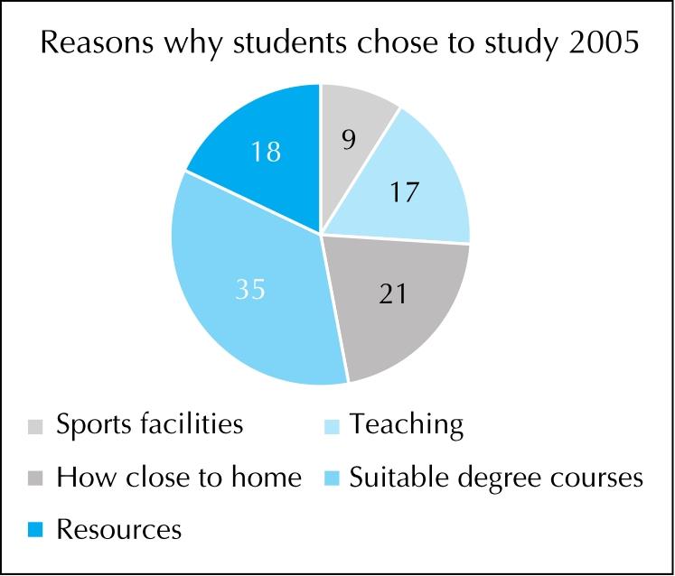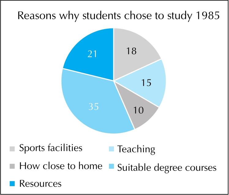 The chart below shows the main reasons why students chose to study at a particular UK university in 1985 and 2005.