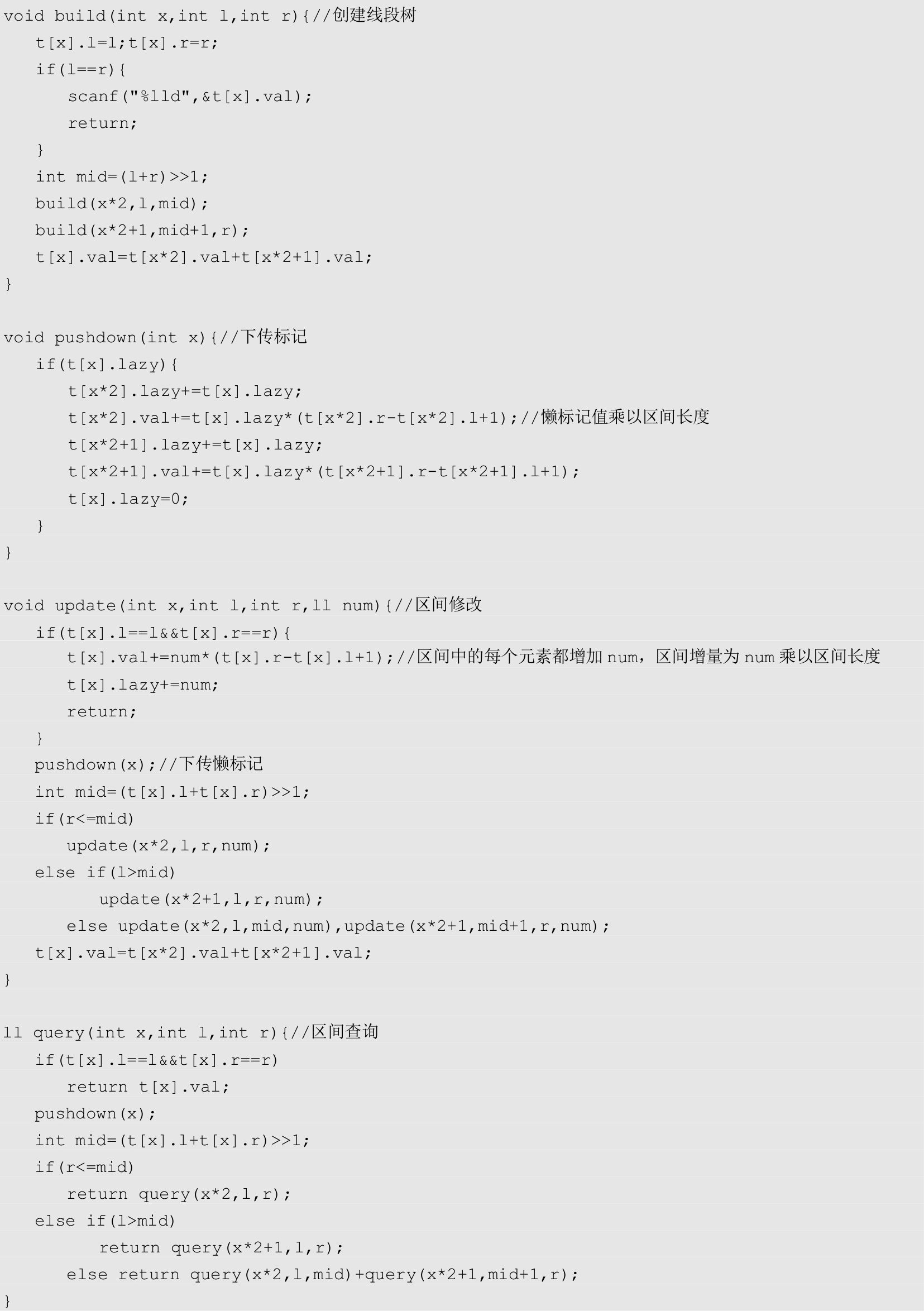 (2)区间查询,在查询区间和的过程中若有懒标记则下传。