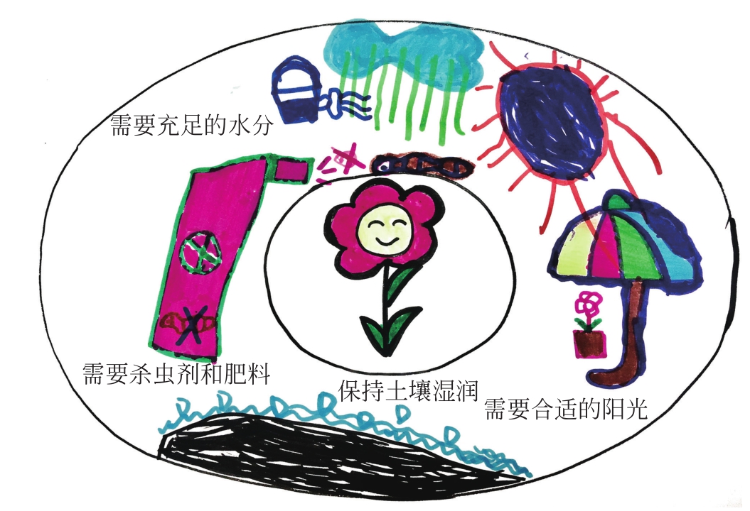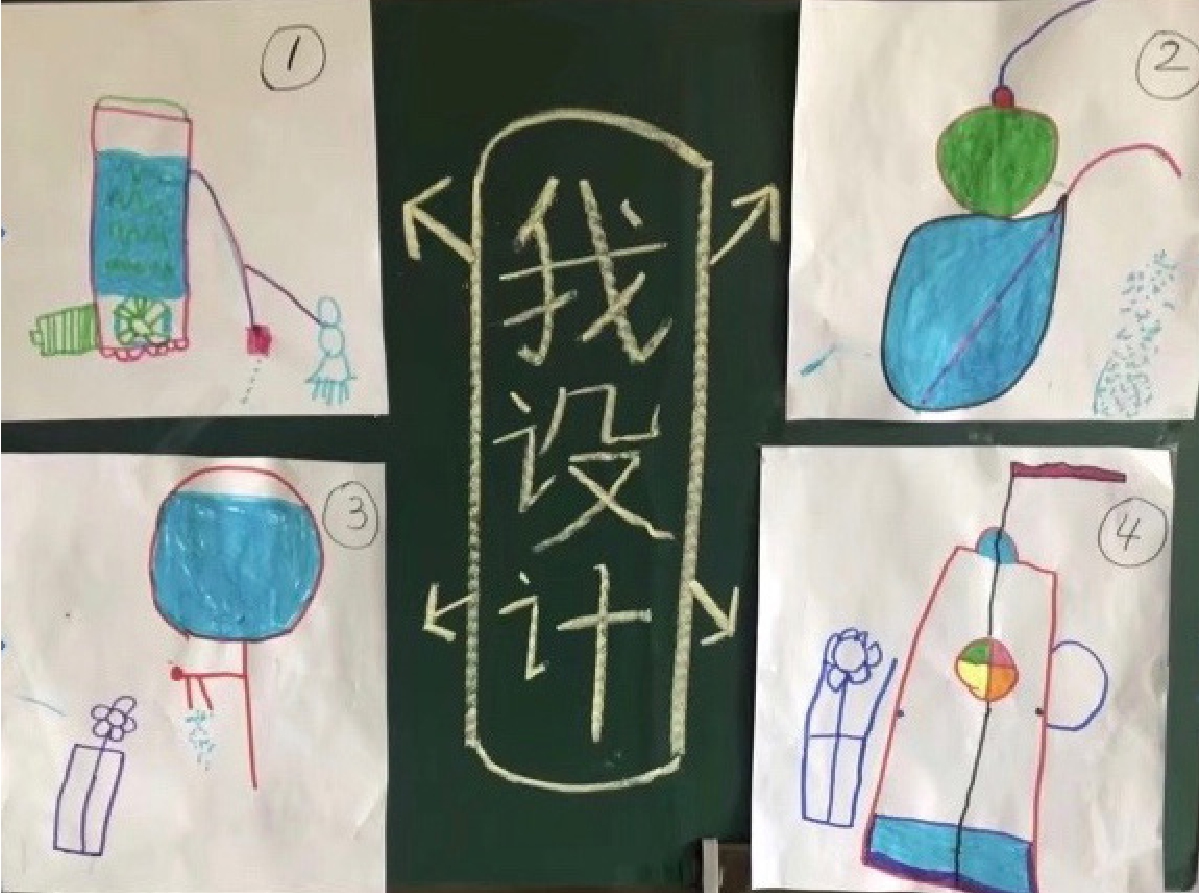 萱萱:我们设计的是第二组浇花器,它叫作手动浇花器。我们需要在瓶身上插一个管子,用手捏瓶身时,就会有水从管子里流出来。