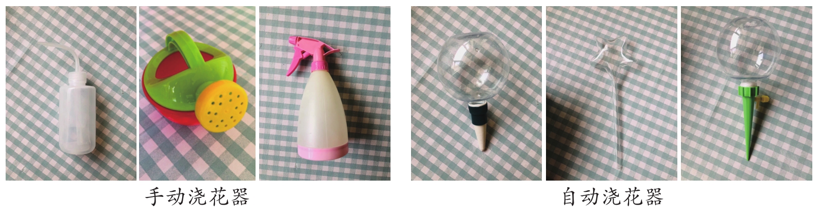 教师:你们都带来了哪些浇花工具?为我们介绍一下吧!