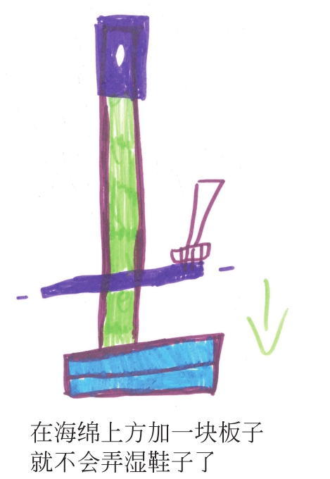 最终幼儿讨论出了解决办法:在海绵上面加一块塑料板。