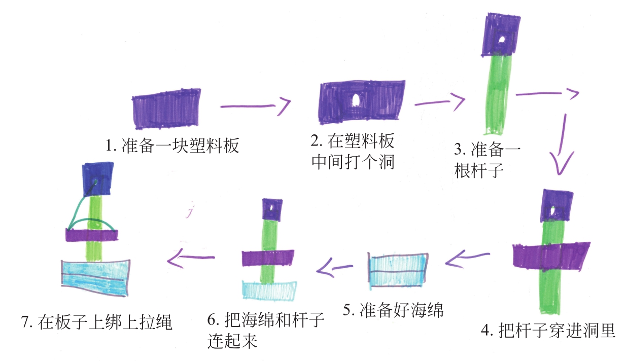 洋洋:我们可以在板子中间打个洞,再把杆子从洞里穿进去。