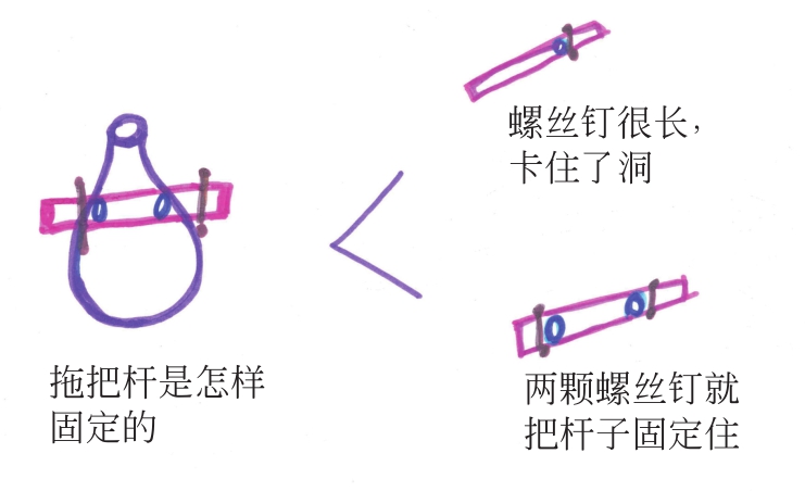 彬彬:两根杆子套在一起总是上下滑动,怎么拖地呀?要用一个东西把它们固定住。