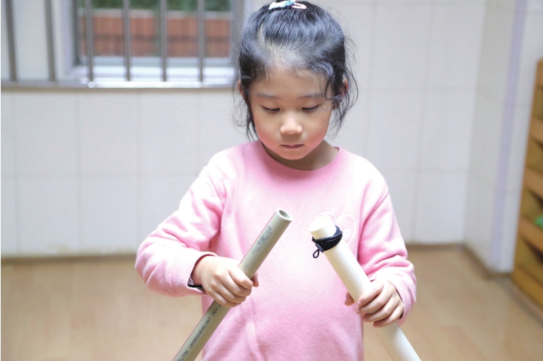 晨晨:PVC管中间是空的,细的这一根可以插进粗的那一根里。