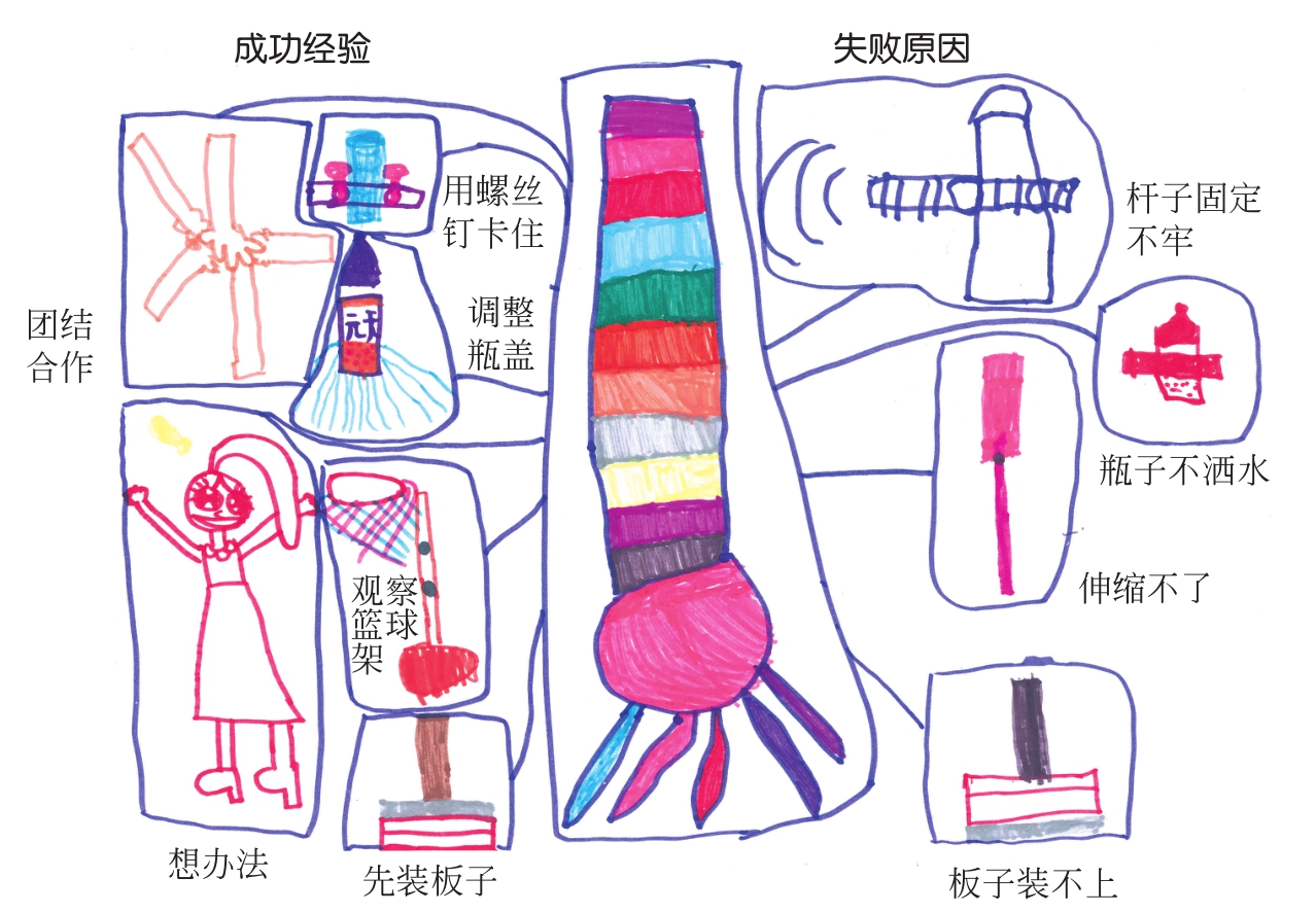 再次,教师借助思维地图促进幼儿反思能力的发展。每次实验成功或失败时,教师都会带领幼儿分析原因并以思维地图的形式画下来,促进了幼儿反思能力的发展。