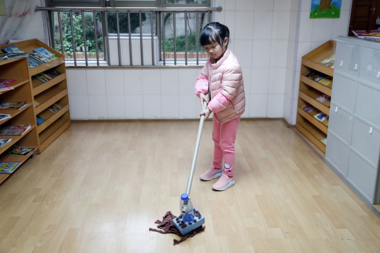 洋洋:是呀,地板上的水太多了,很难拖干。