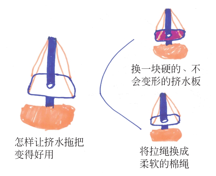 丁丁:如果挤水板能被轻松地拉起来,我们的拖把就好用了。