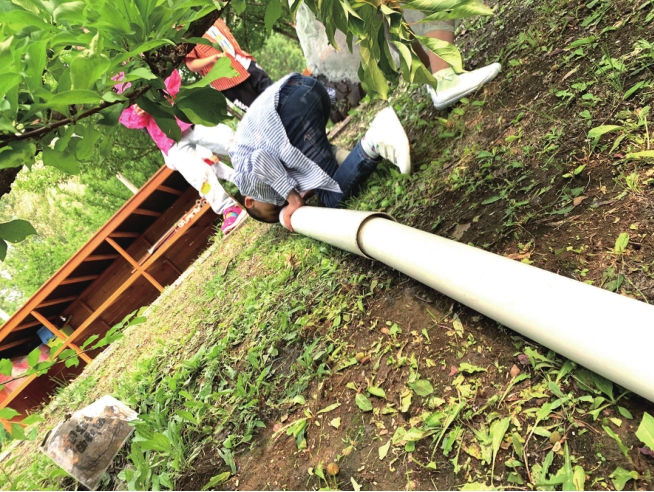 龙宇:大家快看,我放了好几个果子到管子里,可是果子没有滚到山下。怎么回事呢?