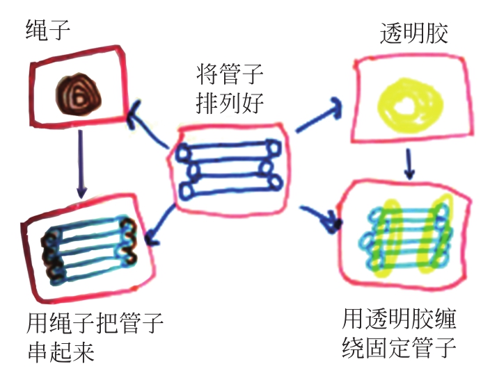 豆豆:我用透明胶把排列好的管子粘在一起。