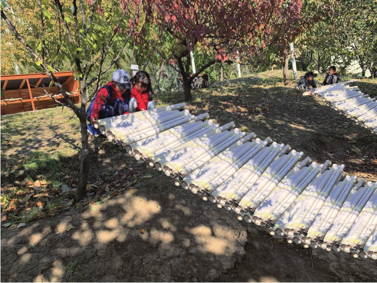妮妮:把管子用绳子绑在一起,形成一条路。