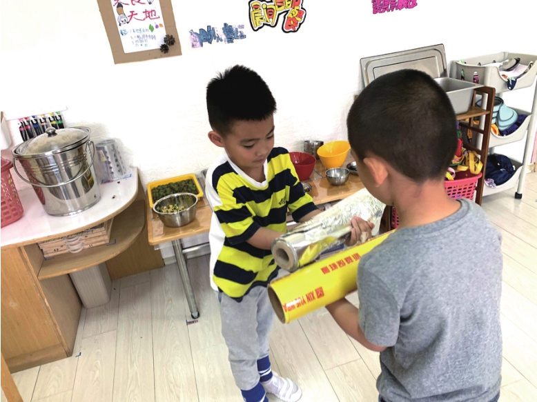 妮妮:咱班有保鲜膜和透明胶,可是去哪儿找锡纸呢?