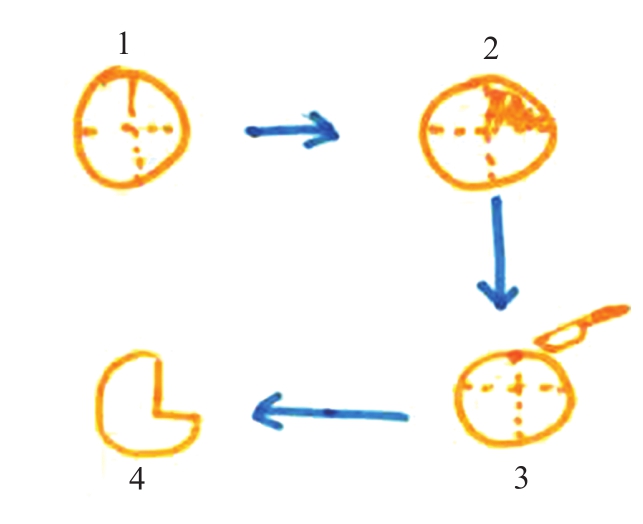 【经验迁移: 幼儿将区域活动中获得的圆的等分经验迁移到剪薯片桶的活动中。】